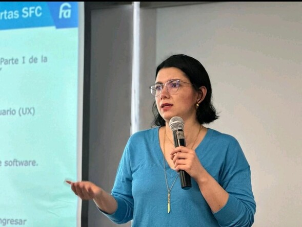Ana María Zuluaga, en el taller de finanzas abiertas, en Fasecolda