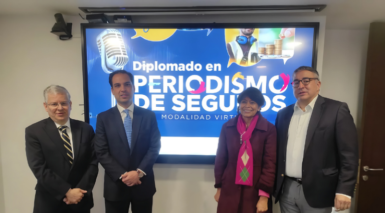 Juan Camilo Neira, director del Departamento de Riesgos y Seguros; e Hilda Zornosa, directora del Observatorio de Riesgos y Seguros de la Universidad Externado de Colombia, se reunieron con Jose Fernando Zarta, director del Instituto Nacional de Seguros – INS; y Gustavo Morales Cobo, presidente de Fasecolda; para oficializar la alianza para el Diplomado en Periodismo de Seguros.
